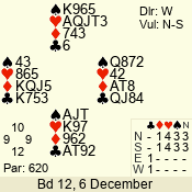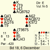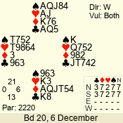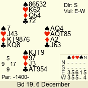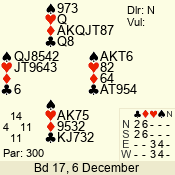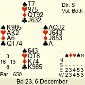 | 3 NT | S | +1 | 430 | 2 | 11 - 12 | 4 | 7 |