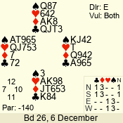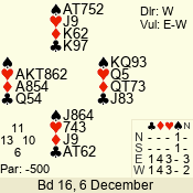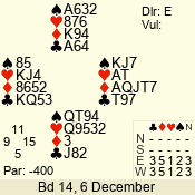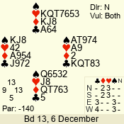| 3 NT | E | +2 | -660 | 4 | 13 - 09 | 11 | 5 |