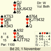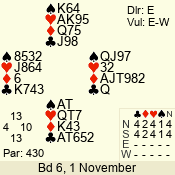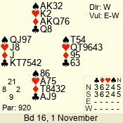 | 3 NT | S | +1 | 430 | 4 | 09 - 01 | 2 | 2 |