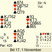 | 3 NT | S | +1 | 430 | 4 | 14 - 13 | 12 | 5 |