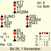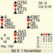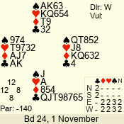 | 3 NT | S | +1 | 430 | 9 | 16 - 12 | 12 | 7 |