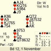 | 3 NT | S | +1 | 430 | 4 | 09 - 01 | 2 | 2 |