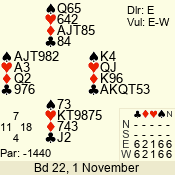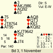 | 3 NT | S | +1 | 430 | 9 | 16 - 12 | 12 | 7 |