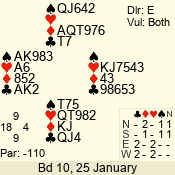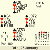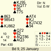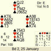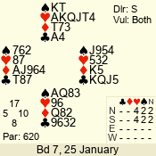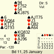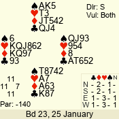| 3 NT | S | +1 | 430 | 6 | 12 - 12 | 1 | 12 |