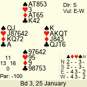 | 3 NT | S | +1 | 430 | 4 | 07 - 02 | 6 | 7 |