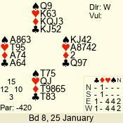 | 3 NT | E | +1 | -630 | 2 | 05 - 08 | 10 | 5 |