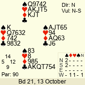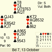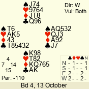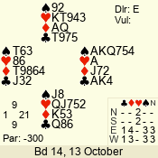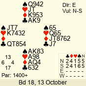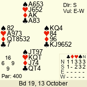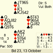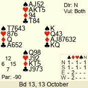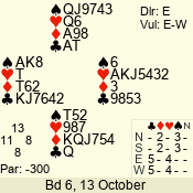 | Con | Dc | Res | Score | Ld | Pairs | Rd | Tbl | | 6 N | E | -4 | 200 | 2 | 05 - 07 | 9 | 5 |
