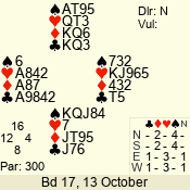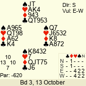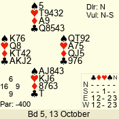 | Con | Dc | Res | Score | Ld | Pairs | Rd | Tbl | | 3 N | W | -4 | 400 | 7 | 05 - 06 | 12 | 5 |