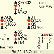 | Con | Dc | Res | Score | Ld | Pairs | Rd | Tbl | 2  | S | +1 | 140 | A | 08 - 03 | 12 | 8 |