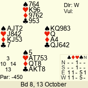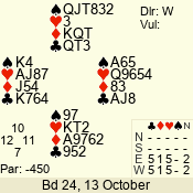 | Con | Dc | Res | Score | Ld | Pairs | Rd | Tbl | 4  | N | +1 | 450 | 9 | 06 - 06 | 11 | 6 |