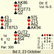 | Con | Dc | Res | Score | Ld | Pairs | Rd | Tbl | | 2 N | E | -2 | 100 | T | 07 - 06 | 2 | 7 |