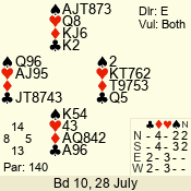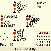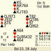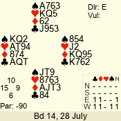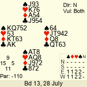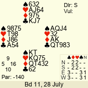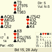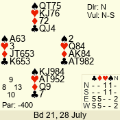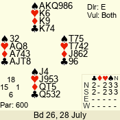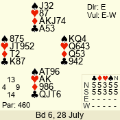 | Con | Dc | Res | Score | Ld | Pairs | Rd | Tbl | | 3 N | S | +2 | 460 | J | 14 - 02 | 13 | 14 |