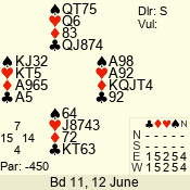 | Con | Dc | Res | Score | Ld | Pairs | Rd | Tbl | | 2 N | E | -1 | 800 | 3 | 05 - 11 | 6 | 5 |