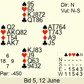 | Con | Dc | Res | Score | Ld | Pairs | Rd | Tbl | | 1 N | S | +2 | -200 | 5 | 11 - 08 | 4 | 11 |