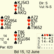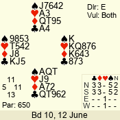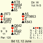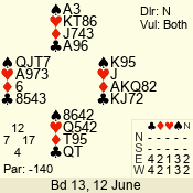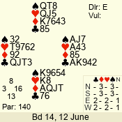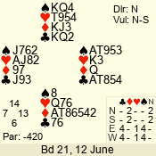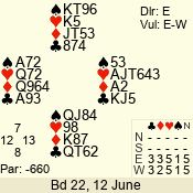 | Con | Dc | Res | Score | Ld | Pairs | Rd | Tbl | | 3 N | E | -3 | 300 | J | 08 - 06 | 3 | 8 |