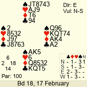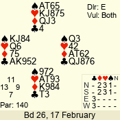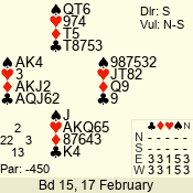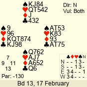 | Con | Dc | Res | Score | Ld | Pairs | Rd | Tbl | | 2 N | S | +1 | 150 | 3 | 07 - 06 | 2 | 7 |