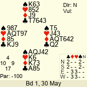 | 3 NT | S | -1 | -50 | J | 07 - 02 | 6 | 7 |