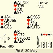 | 3 NT | W | +2 | -460 | A | 09 - 06 | 4 | 9 |
