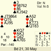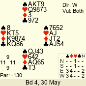 | 3 NT | W | +2 | -460 | A | 09 - 06 | 4 | 9 |