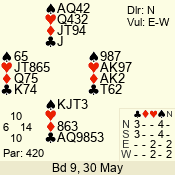 | Con | Dc | Res | Score | Ld | Pairs | Rd | Tbl | 4  | S | = | 420 | K | 04 - 09 | 13 | 4 |