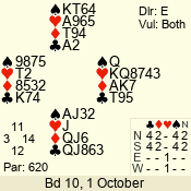 | 3 NT | E | +1 | -430 | J | 07 - 12 | 6 | 4 |