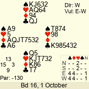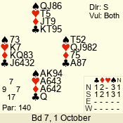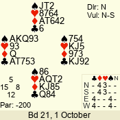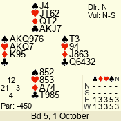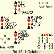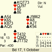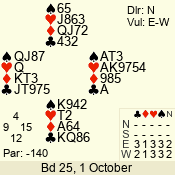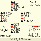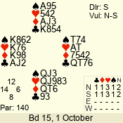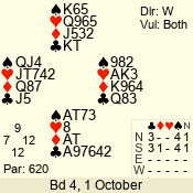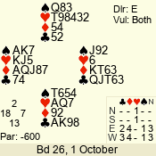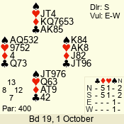 | 3 NT | S | +1 | 430 | 3 | 10 - 03 | 6 | 6 |