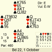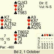| 3 NT | S | +2 | 460 | J | 09 - 01 | 8 | 4 |