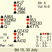 Tournaments: Taieri Graded Pairs (2011) 30 July