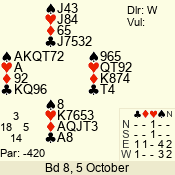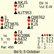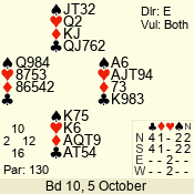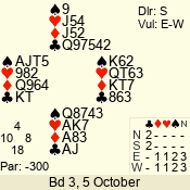 | Con | Dc | Res | Score | Ld | Pairs | Rd | Tbl | | 3 N | W | -2 | 200 | 9 | 03 - 06 | 10 | 3 |