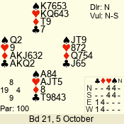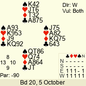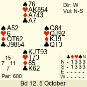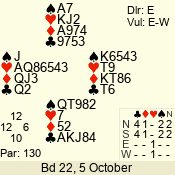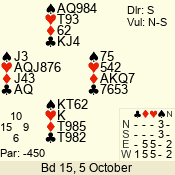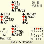 | Con | Dc | Res | Score | Ld | Pairs | Rd | Tbl | | 1 N | S | +2 | 150 | A | 02 - 03 | 12 | 2 |