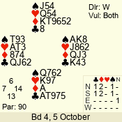 | Con | Dc | Res | Score | Ld | Pairs | Rd | Tbl | 3  | N | +2 | 200 | Q | 09 - 04 | 6 | 9 |