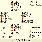 | Con | Dc | Res | Score | Ld | Pairs | Rd | Tbl | 1  | S | +1 | 110 | 7 | 05 - 08 | 10 | 5 |