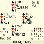 | Con | Dc | Res | Score | Ld | Pairs | Rd | Tbl | | 1 N | S | +1 | 120 | 4 | 08 - 11 | 9 | 8 |