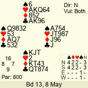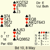 | Con | Dc | Res | Score | Ld | Pairs | Rd | Tbl | 4  | S | +1 | 450 | 8 | 09 - 07 | 3 | 9 |