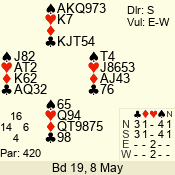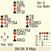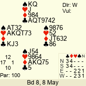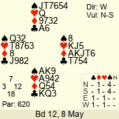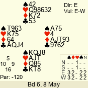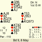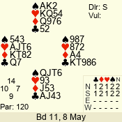 | Con | Dc | Res | Score | Ld | Pairs | Rd | Tbl | | 1 N | S | +1 | 120 | 4 | 08 - 11 | 9 | 8 |