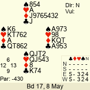 | Con | Dc | Res | Score | Ld | Pairs | Rd | Tbl | | 3 N | N | +1 | 430 | 3 | 03 - 04 | 11 | 3 |