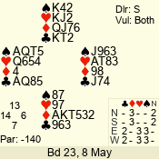 | Con | Dc | Res | Score | Ld | Pairs | Rd | Tbl | | 3 N | W | -1 | 50 | J | 01 - 01 | 1 | 1 |