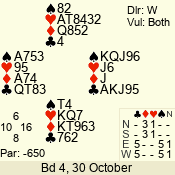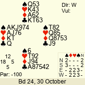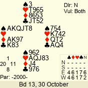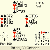 | 3 NT | W | +2 | -460 | 3 | 13 - 10 | 4 | 13 |
