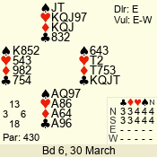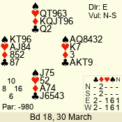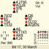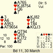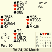 | Con | Dc | Res | Score | Ld | Pairs | Rd | Tbl | | 3 N | S | +3 | 490 | 4 | 08 - 12 | 3 | 1 |
