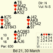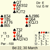 | Con | Dc | Res | Score | Ld | Pairs | Rd | Tbl | | 3 N | N | +1 | 630 | 4 | 14 - 08 | 7 | 5 |