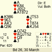 | Con | Dc | Res | Score | Ld | Pairs | Rd | Tbl | 4  | W | = | -620 | 4 | 14 - 05 | 4 | 5 |