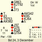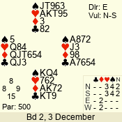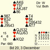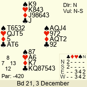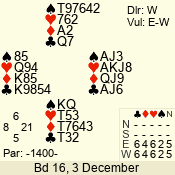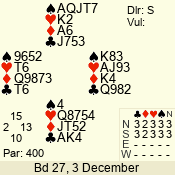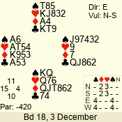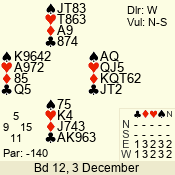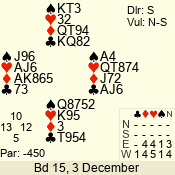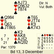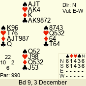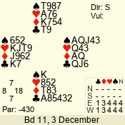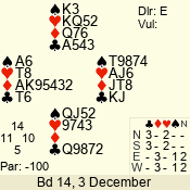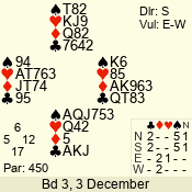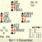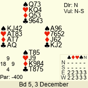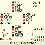 | 3 NT | S | +1 | 430 | Q | 05 - 02 | 4 | 5 |