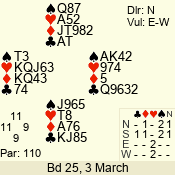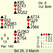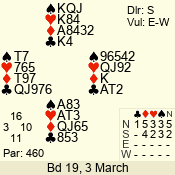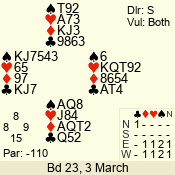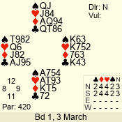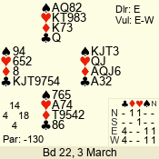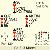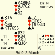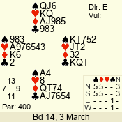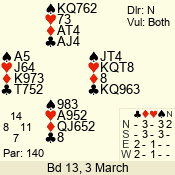 | 3 NT | E | +1 | -430 | 3 | 04 - 08 | 13 | 4 |