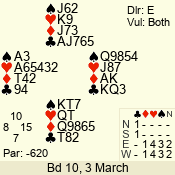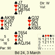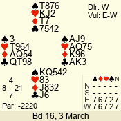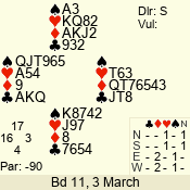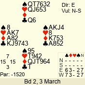 | 3 NT | W | +1 | -630 | J | 01 - 10 | 3 | 1 |