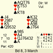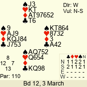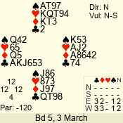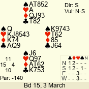 | 3 NT | W | +2 | -660 | 5 | 07 - 09 | 10 | 7 |