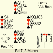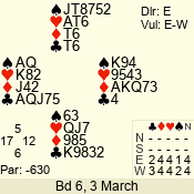 | 3 NT | W | +1 | -630 | 7 | 02 - 01 | 2 | 2 |
