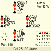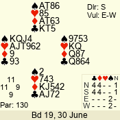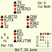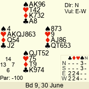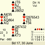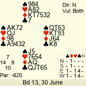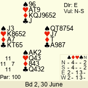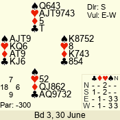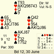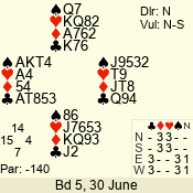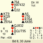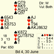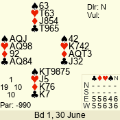 | 3 NT | W | +1 | -430 | T | 01 - 11 | 6 | 3 |