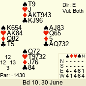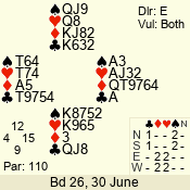 | 3 NT | E | +1 | -430 | 3 | 10 - 08 | 8 | 1 |