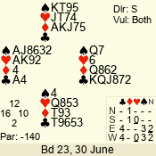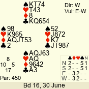 | 3 NT | W | +2 | -460 | 6 | 10 - 01 | 1 | 1 |