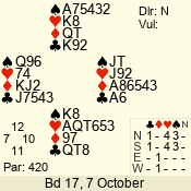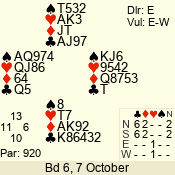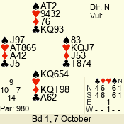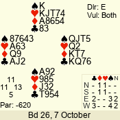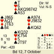 | Con | Dc | Res | Score | Ld | Pairs | Rd | Tbl | 4  | S | = | 420 | A | 01 - 02 | 9 | 1 |